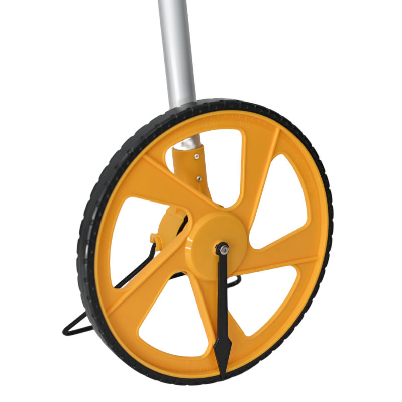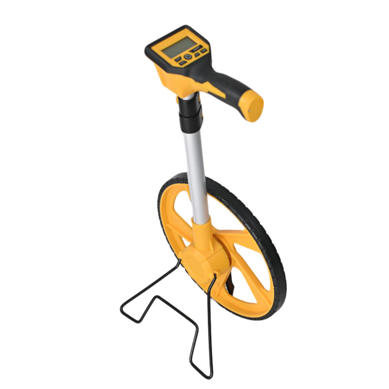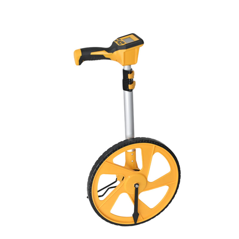 1.Large wheel 318mm diameter. 2.Confortable large handle. 3.Foldable design, small size after folding, convenient for transportation and storage. 4.Selected raw materials, sturdy workmanship, suitable for various work environments. 5.9999.9m measuring distance. 6.Super clear displayer with light, can see the data easily from different angle. 7.AAA*2 battery, 4 data storage.